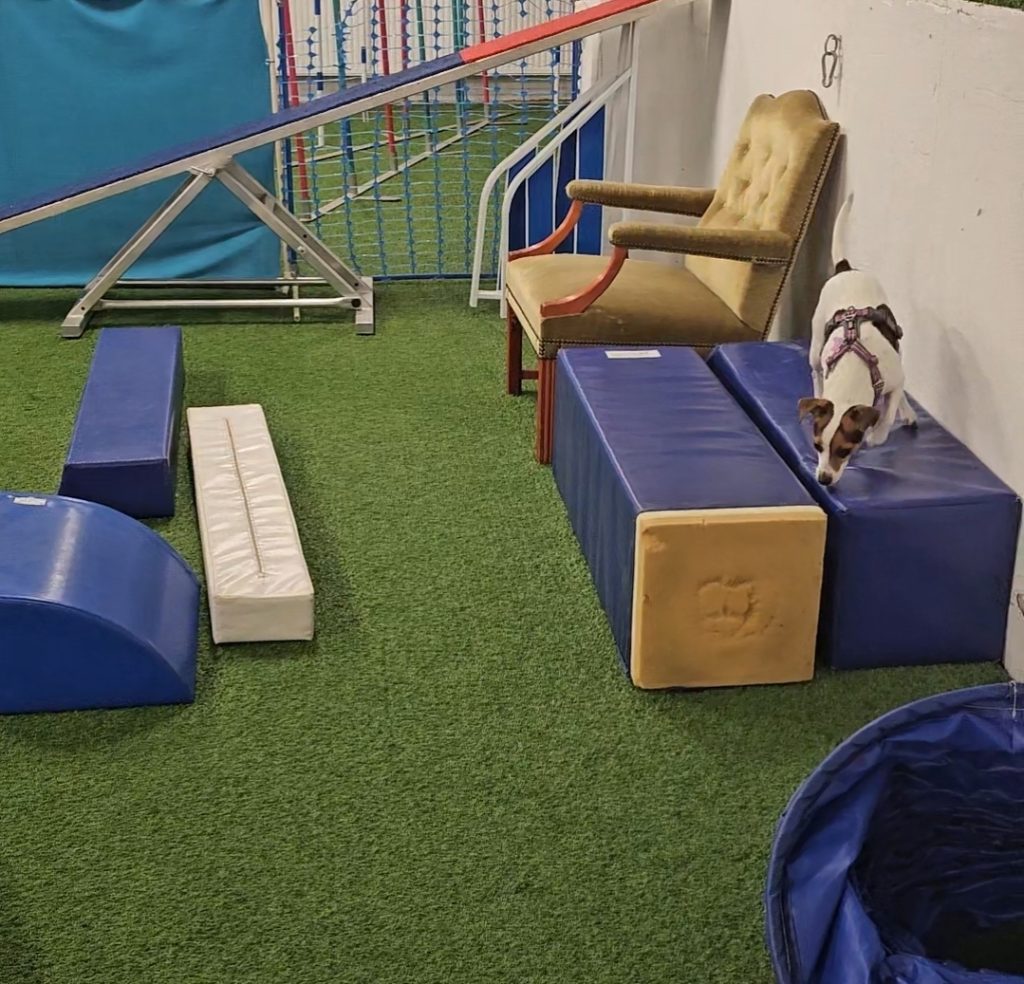 Ni får pausa och vattna hunden i entrén (vid starten) eller vid markerat område i grå & blå hallen